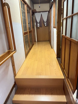 廊下が少し暗かったのですが、床材を少し明るい色に変えたことで