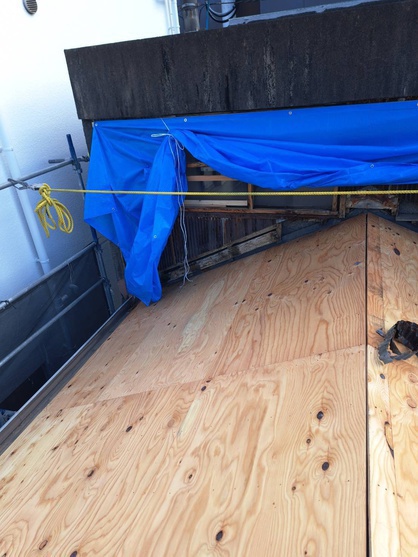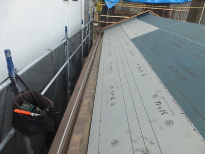 構造用合板を張った後、新しいルーフィングを敷き込んで