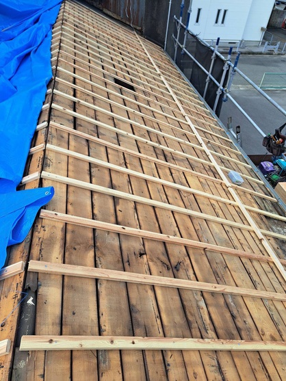 古いルーフィングも剥いで、屋根下地を造っていきます。