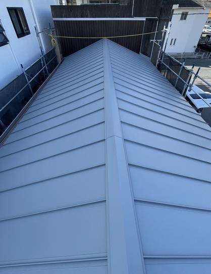 このタイプは、立平葺き(縦ハゼ葺き)と呼ばれる鋼板屋根です。